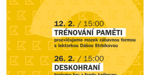 Program Knihovny Kutná Hora v jejich kaňkovské pobočce. Trénování paměti a deskohraní. Začínáme už příští týden ve čtvrtek 12. 2. a pokračujeme ve čtvrtek 26. 2. 2026. Uveřejnil: Adam Vančo OsV Kaňk 5. 2. 2026