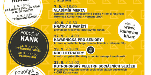 Knihovna Kutná Hora si opět dovoluje skrze stránky kaňkovského osadního výboru prezentovat svůj program konání akcí ve své pobočce na Kaňku, tentokrát na měsíc duben 2025. Můžete se těšit na hraní deskových her, opětovné trénování mozkových závitů, nebo velikonoční dílnu.