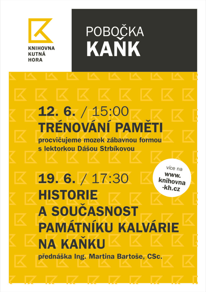 Osadní výbor si prostřednictvím svých webových stránek dovoluje prezentovat občanům program kaňkovské pobočky Knihovny Kutná Hora na měsíc červen roku 2025. Právě nadcházející měsíc se můžete opět těšit na pochvalované trénování paměti a prohlubování mozkových závitů a také na jedinečnou možnost zabrousit do bohatých dějin naší sice malé, avšak významné vesnice prostřednictvím přednášky pana Ing. Martina Bartoše, CSc. Všichni jsou jako vždy srdečně zváni.
